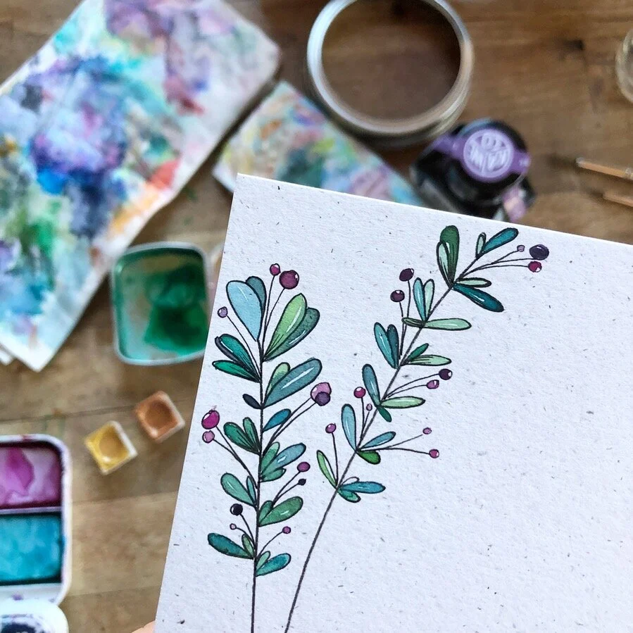 The art world is not a very environmentally friendly place. I choose to draw & paint with watercolors because they are beautiful mediums that have a low impact on our environment.