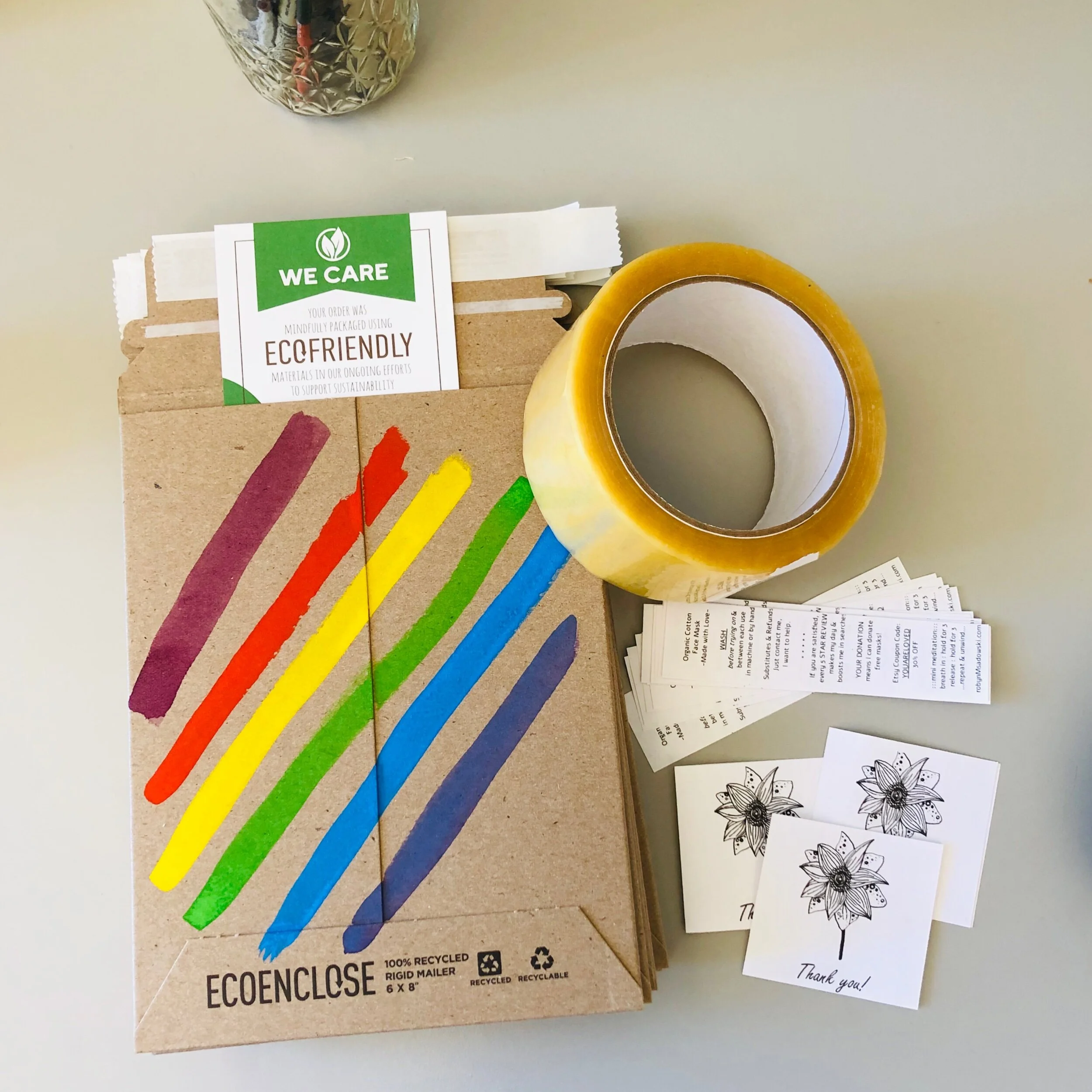Eco Enclose carries almost everything I need for shipping materials at a reasonable price. Most of their items are 100% Post Consumer Waste (PCW) Recycled & Chlorine Free Processed (CFP).